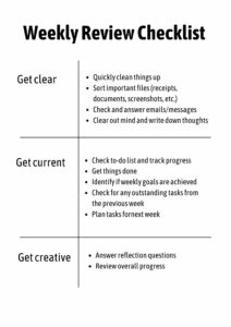 Likewise, the weekly review process that you’ll set might not work immediately for you. When that happens, re-organize your process accordingly and allow flexibility to adapt as you learn from each week’s experience.